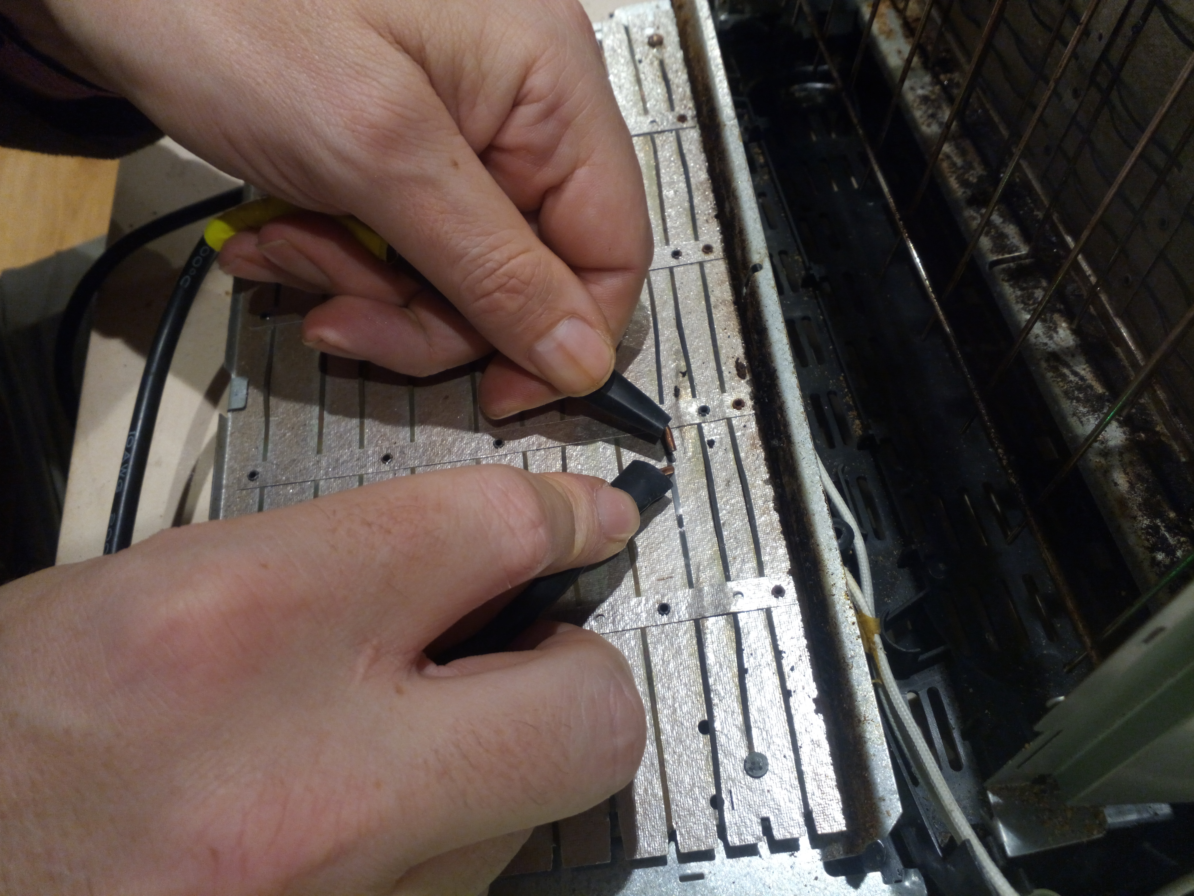 Zuerst muss das Heizelement soweit ausgebaut/freigelegt werden das man mit den Zangen und dem Gasbrenner gut arbeiten kann. Das ist eine Grundvoraussetzung.