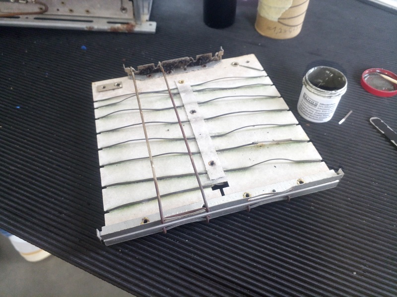 Zuerst muss das Heizelement soweit ausgebaut werden das man mit den Zangen und den Elektroden des Schweissgerätes gut arbeiten kann. Das ist eine Grundvoraussetzung. Von Vorteil ist es auch wenn ein breiter Heizdraht verbaut wurde.